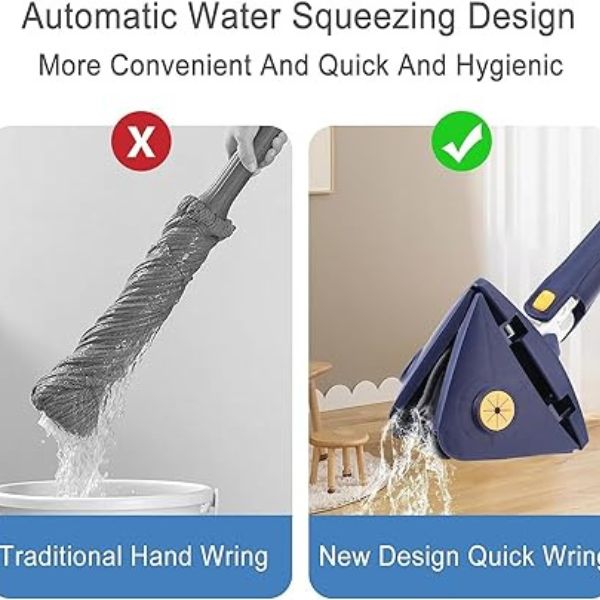 - 360° rotirajući podesivi mop za čišćenje- Trouglasti mop za čišćenje podova je dizajniran sa rotirajućom glavom 360° i trouglastom podlogom za brisanje, a koje su ga učinili zaista profesionalnim sredstvom za čišćenje podova za dom. Može da obavi posao brzo i efikasno, i savršeno je rešenje za čišćenje podova za svakodnevno i nedeljno čišćenje poda za uklanjanje prašine, dlake kućnih ljubimaca, prljavštine, ostataka i još mnogo toga