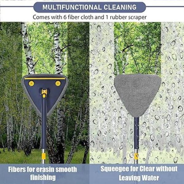 - Ova krpa za čišćenje zidova uključuje 2 jastučića za čišćenje od mikrovlakana za mokro i suvo čišćenje. Trouglasti mop za čišćenje obezbeđuje veću površinu za čišćenje. Tkanina od šenila + tkanina od vlakana ima jaku apsorpciju vode i može lako očistiti prašinu. Ova rotirajuća podesiva krpa za čišćenje odlična je za brisanje prozora, čišćenje poda, brisanje prašine i uklanjanje dlačica.