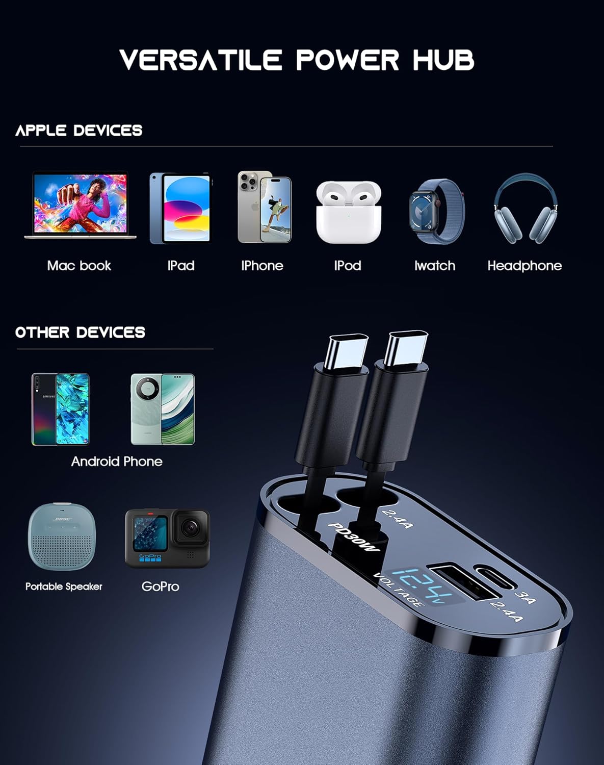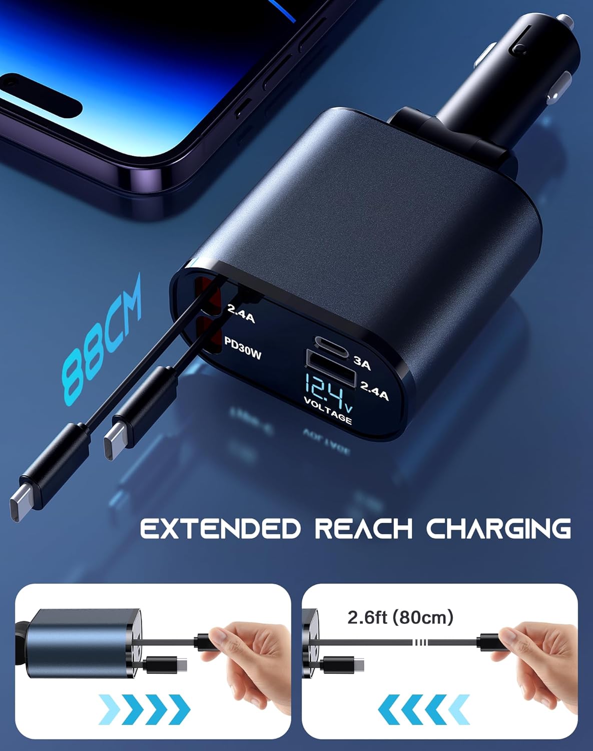U današnje vrijeme, kada su telefoni, tableti i drugi pametni uređaji neizostavan dio svakodnevice, pouzdan punjač u autu je postao potreba, a ne luksuz. Auto punjač sa uvlačenjem kablova 4 u 1 donosi praktičnost, brzinu i urednost u svaku vožnju.