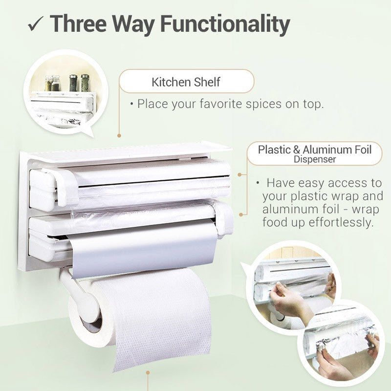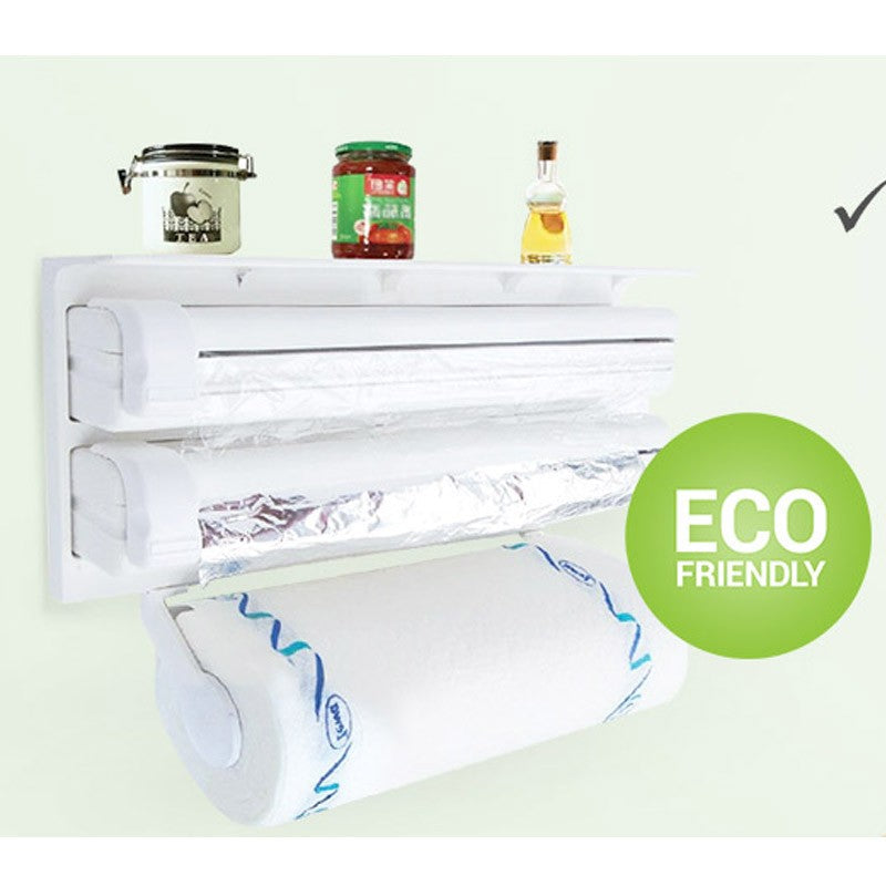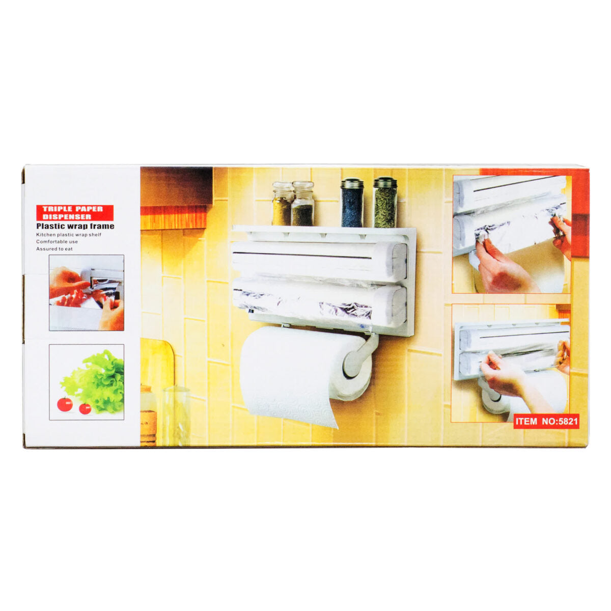 - Raspolaže sa tri mesta za: alu foliju, prijanjajuću (streč) foliju i kuhinjski ubrus