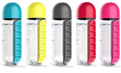 Pored pregrada za ljekove, uz flašu dolazi i poklopac u vidu čaše, koju možete da napunite vodom i popijete ljekove u svakom trenutku, gdje god da se nalazite.