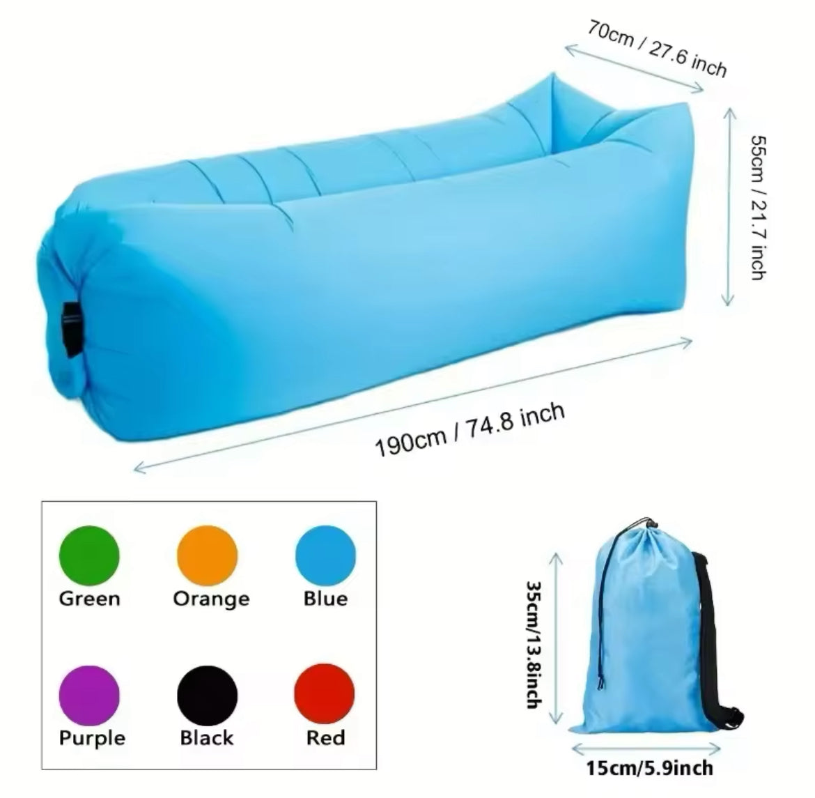 Ako ste u potrazi za jednostavnim i praktičnim proizvodom za super odmor, tu je naš Lazy Bag. Naduvava za svega 15 sekundi, ne koristi se pumpa, već samo vazduh. Lazy Bag ležaljka je pokretni dušek/fotelja za uživanje. Veoma praktičan, ergonomski dizajn je čini veoma jednostavnom za korišćenje.