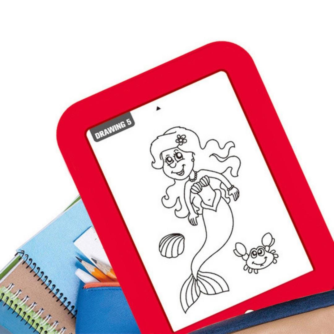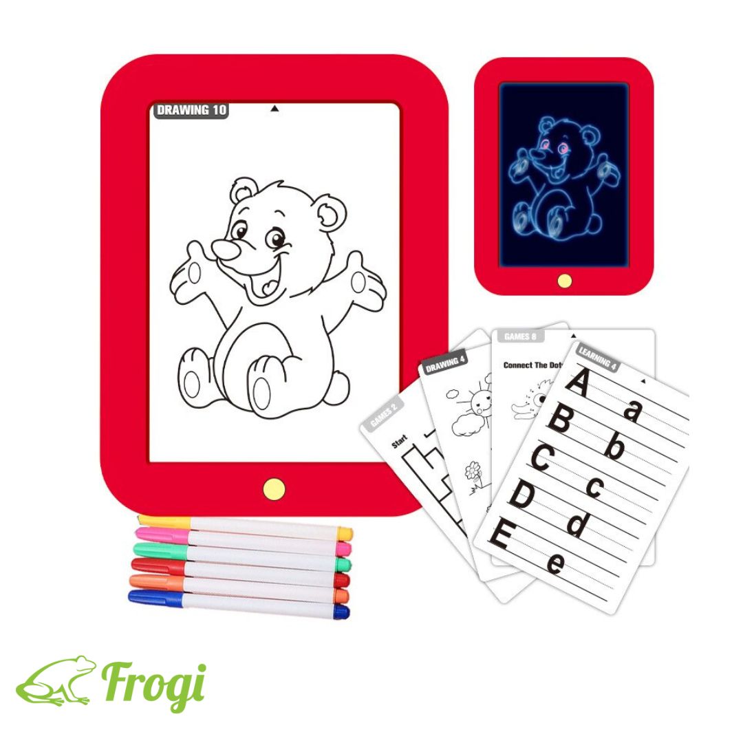 Samo odaberite željenu aktivnost: crtanje, igru ili učenje, stavite karticu u otvor i pritisnite dugme s prednje strane kako biste aktivirali svjetlosne efekte. Krpicom obrišite i napravite novi crtež iznova!