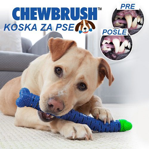Sada postoji jednostavan način da vaš pas dobije čišćenje zuba. Chewbrush je četkica za zube koja sama četka. Što se više pas/štene igra sa koskom, to su mu čistiji zubi!