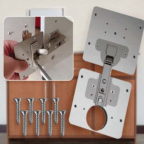 Predstavljamo vam Set ploča za popravak šarki – savršeno rješenje za svako oštećeno mjesto na vašem ormaru ili kuhinjskom elementu. Ove tanke, ali izdržljive metalne ploče dizajnirane su da prekriju i ojačaju oštećeni dio drveta gdje se šarke montiraju. Jednostavno ih pričvrstite na mjesto starih šarki, a zatim na njih montirajte šarku.